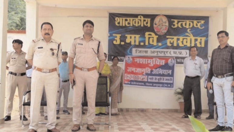 शा.उच्च.माध्य.विद्या. लखौरा में पुलिस ने दिलाई नशा मुक्ति की शपथ