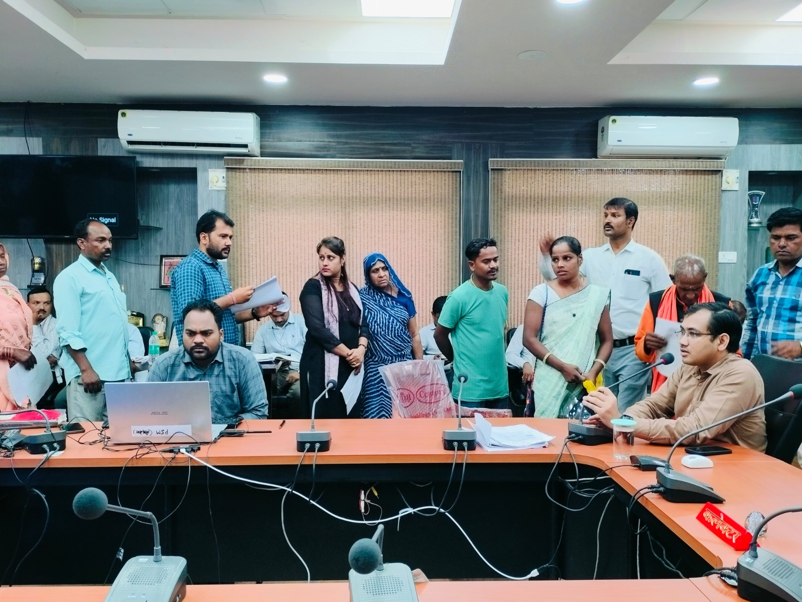 अनूपपुर। जिला स्तरीय जनसुनवाई मंगलवार को कलेक्ट्रेट स्थित नर्मदा सभागार में संपन्न हुई। मुख्य कार्यपालन अधिकारी जिला पंचायत श्री तन्मय वशिष्ठ शर्मा ने 64 आवेदनों पर जनसुनवाई करते हुए संबंधित विभागों के अधिकारियों को निराकरण करने के निर्देश दिए। जनसुनवाई में अपर कलेक्टर दिलीप कुमार पाण्डेय, अनुविभागीय अधिकारी राजस्व अनूपपुर कमलेश पुरी, अनुविभागीय अधिकारी राजस्व जैतहरी श्रीमती अंजली द्विवेदी, अनुविभागीय अधिकारी राजस्व कोतमा अजीत तिर्की, अनुविभागीय अधिकारी राजस्व पुष्पराजगढ़ सुधाकर सिंह बघेल सहित विभिन्न विभागों के जिला अधिकारियों ने भी आवेदकों की समस्याएं सुनी। जनसुनवाई में ग्राम बरबसपुर तहसील अनूपपुर की श्रीमती कलावती रौतेल ने पट्टे की भूमि का नामांतरण किए जाने, ग्राम कोदैली तहसील अनूपपुर की श्रीमती उर्मिला देवी ने पट्टे की भूमि का नक्शा तरमीम किए जाने, बदरा निवासी ओमवती सुमेर ने जाति प्रमाण पत्र बनवाए जाने, ग्राम उमरिया तहसील जैतहरी की श्रीमती रेखा बाई ने गरीबी रेखा की सूची में नाम जुड़वाए जाने, वार्ड नं. 14 पुरानी बस्ती अनूपपुर के अनिल विश्वकर्मा ने शौचालय बनवाने हेतु सहायता राशि दिलाए जाने, वेंकटनगर तहसील जैतहरी की श्रीमती गुड्डी बाई ने वृद्धावस्था पेंशन दिलाए जाने के संबंध में आवेदन दिए।